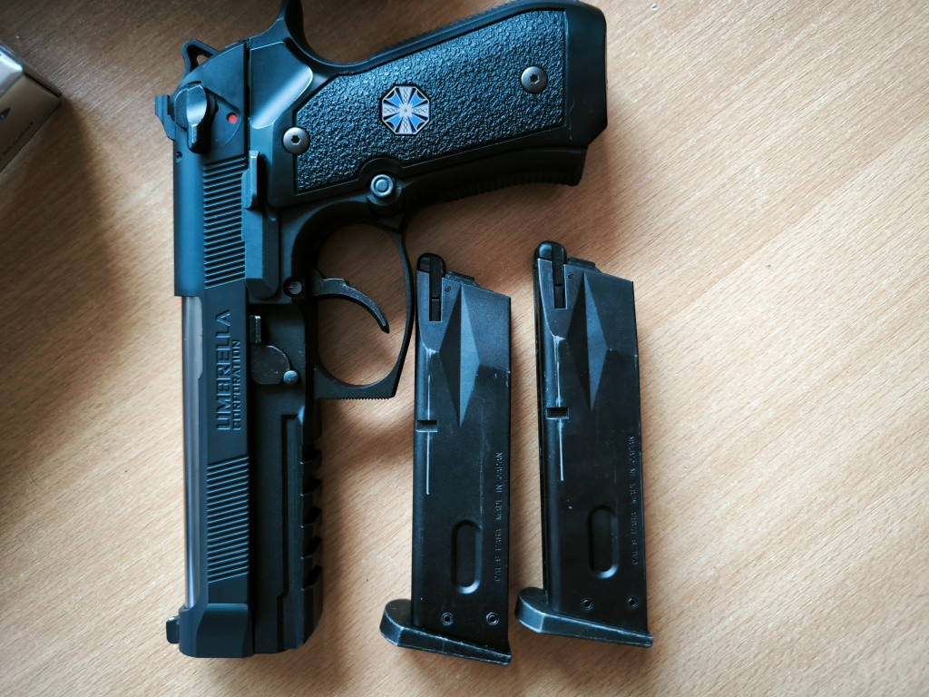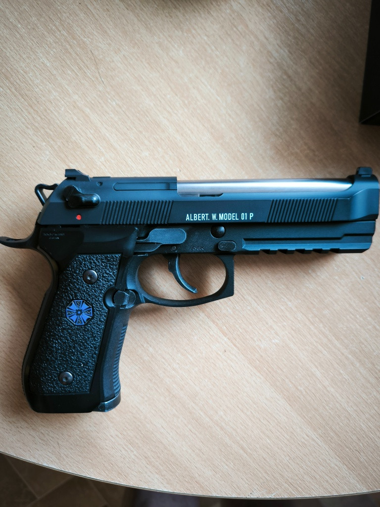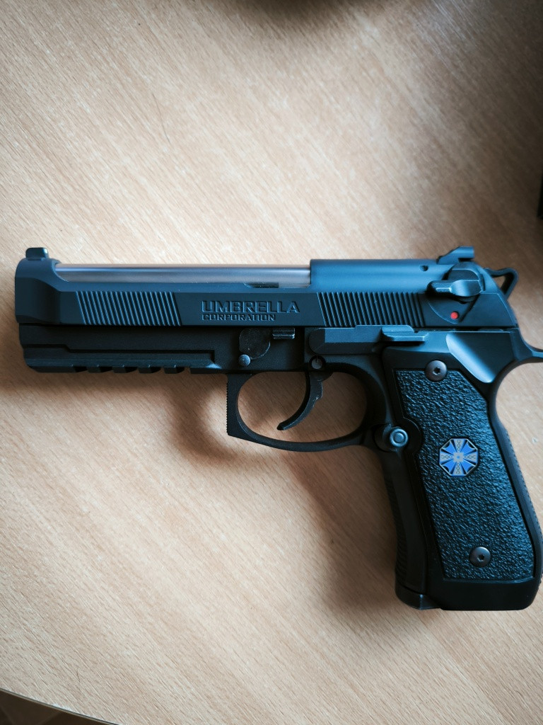 Prodám tuto berettu z herní série Resident Evil , origo nepoškozené balení a zbraň ve 100% stavu. Nesloužila ke hraní, ale na výstavu s občasným "zahradním střílením", proto je zde vyměněna hop gumička za maple leaf decepticon, zvládne hopovat 0.36 s výbornou přesností a skvělým dostřelem. 2x origo zásobník v balení. Pořizovací cena přes 6000,-