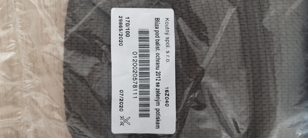 Popis:Blůza pod balistickou ochranu vz.95 (UBACS)