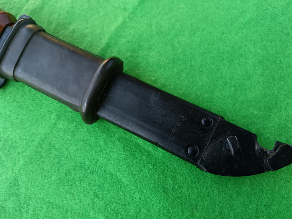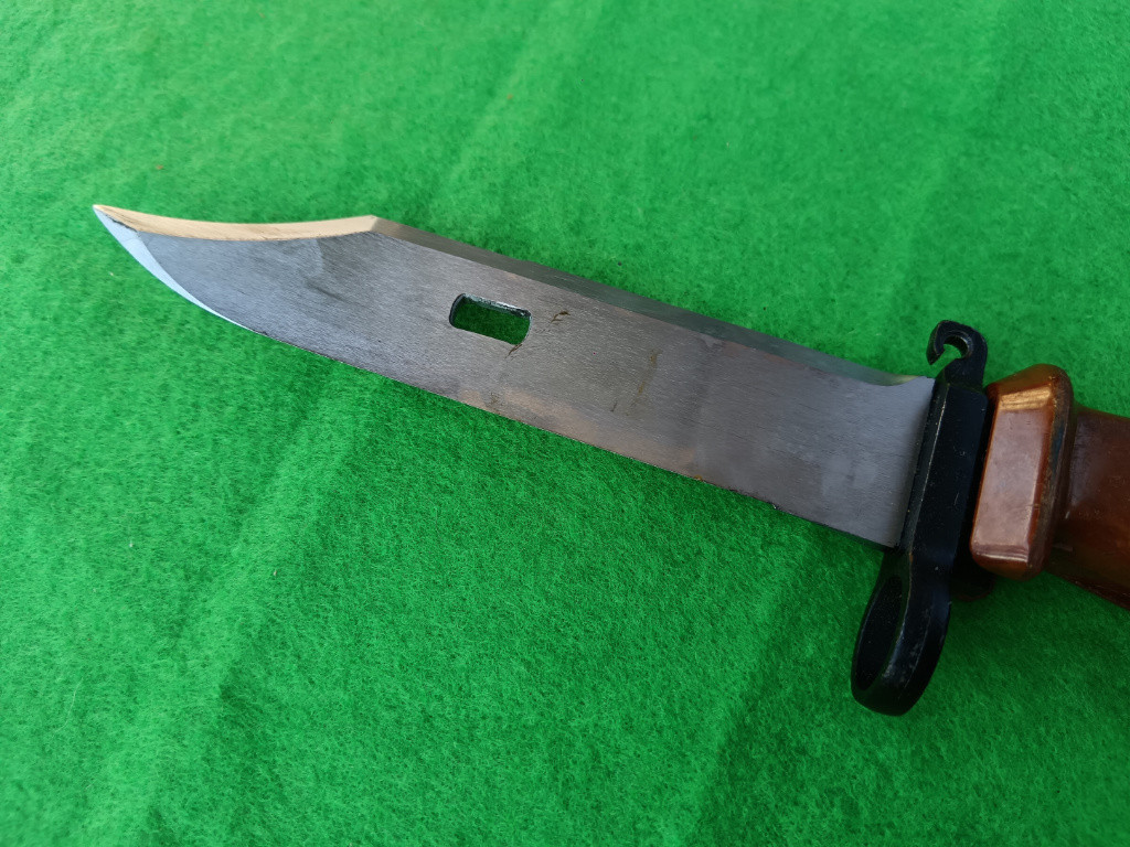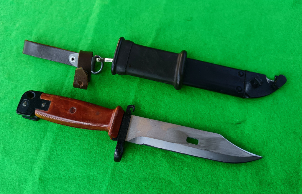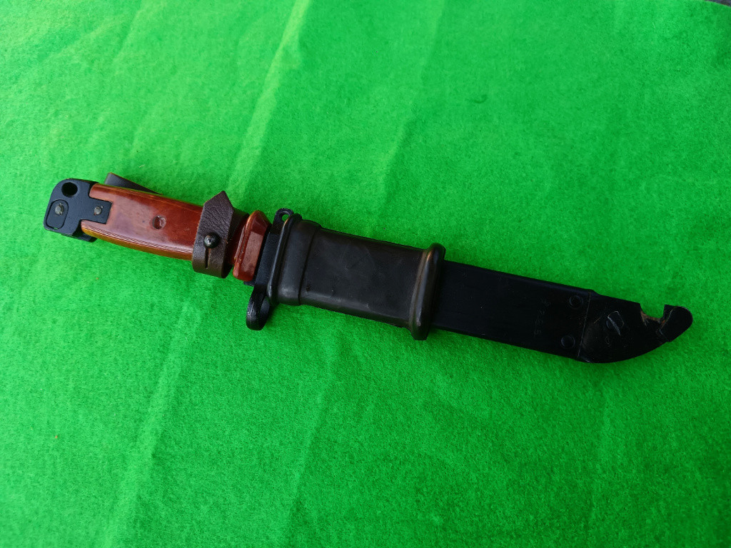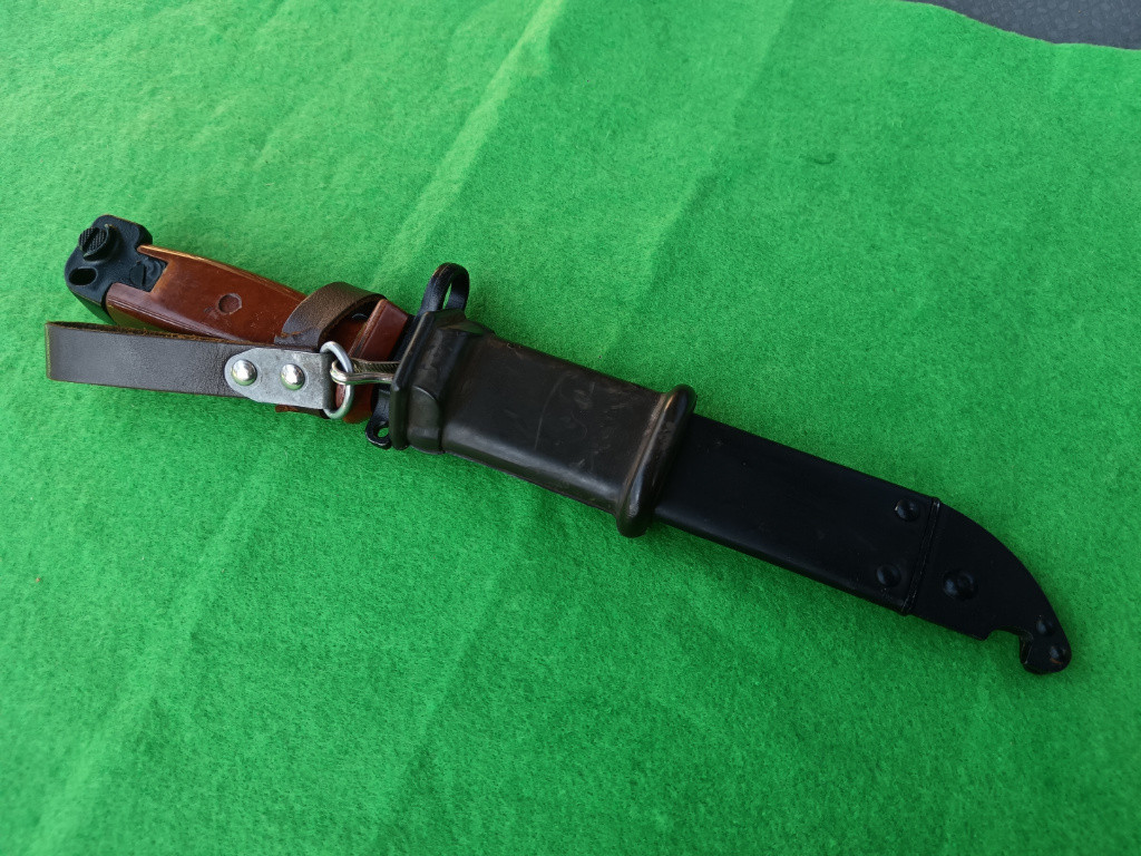 Nabízím použitý polský bodák pro Akm v zachovalém stavu. Kousek kůže je natržen viz. foto. Cena je 900kč + poštovné.
