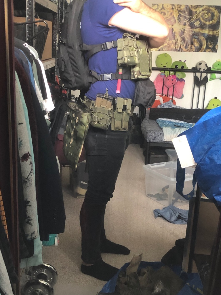 Zdravím, prodám molle opasek osazený sumkami a pouzdrem tak jak je na foto. Sumky: dvojitá pušková sumka samosvorná "bungee" (na zásobníky m4, ak, ale i sr25 či scar), dvojitá pistolová sumka s chlopněmi, odhazovací sumka, sumka na mobil, univerzální samosvorná sumka např na láhev, či pláštěnku atd, pistolové univerzální pouzdro textil.