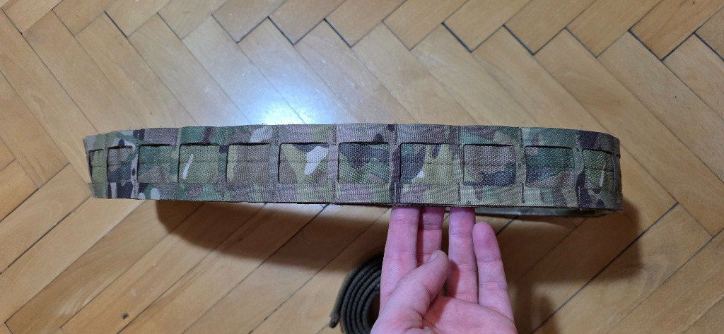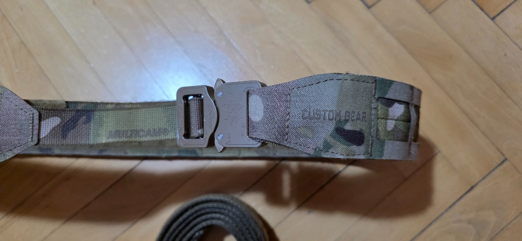 Prodám bojový opasek v šíři 50 mm s menší 25mm Cobra sponou, Molle vazbou a vnitřním kalhotovým opaskem.