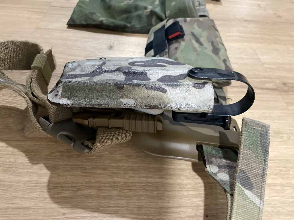 Prodám opasek CG multicam velikost M. Na opasku kydex na G17+TLR 1, dokonce si myslim, že původně bylo pro TLR 2 (nemám jak zkusit), pouzdro je na QLS safariland snížené platformě v coyote barvě. Ifak od 56gear, sumky pistolové od Warrioru a odhazovák v MCT od emersonu. Dohoda možná