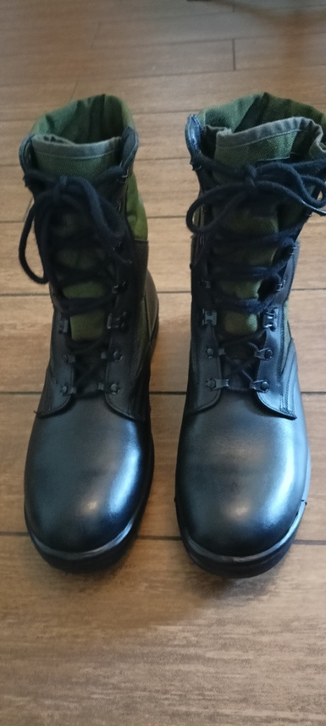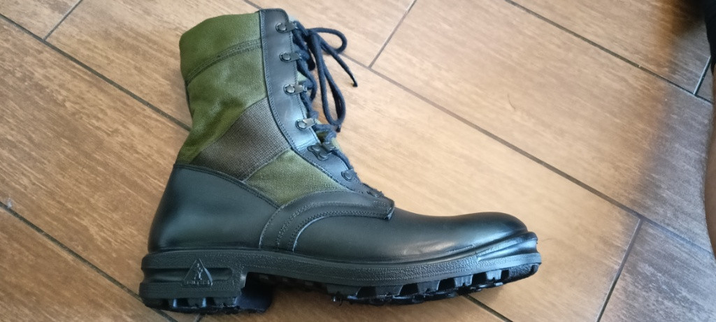 Prodám nové nenošené boty německé armády zn. Baltes Jungle Boots. Velikost 46-300. (Vnitřek boty 30cm). Materiál je kůže/nylon cordura. Polstrovaný lem, rychlošněrování. Antistatická, odolná benzínu a oleji. Preferuji osobní odběr v Českých Budějovicích. Možnost poslat zásilkovnou, poštovné hradí kupující.