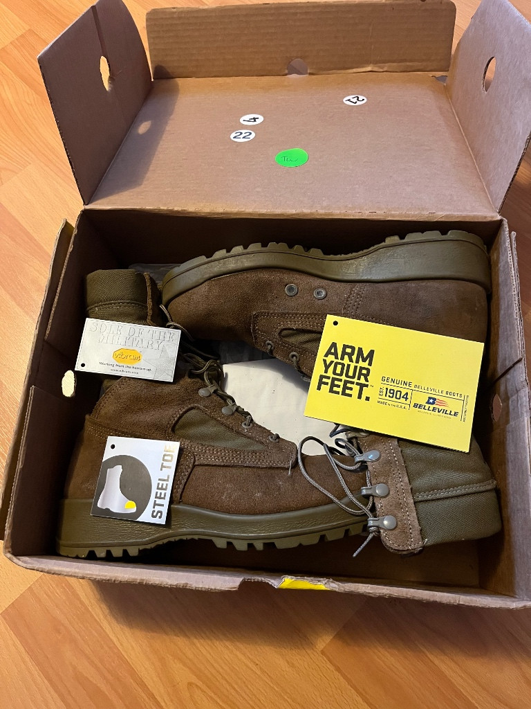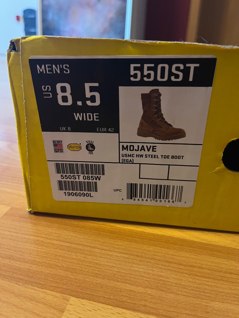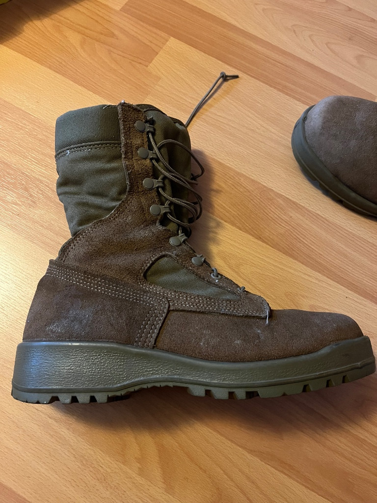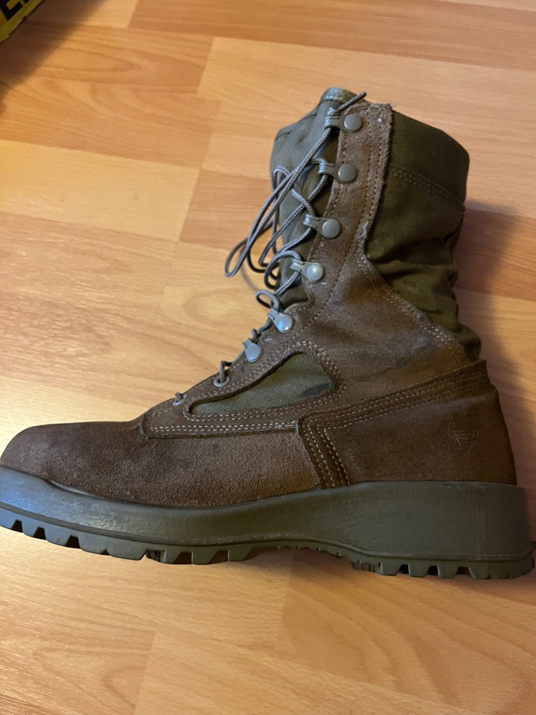 Velikost 8,5 wide (odpovídá zhruba 43 EU) Téměř nenošené včetně původního balení. Původní pořizovací cena: 4 500,-Kč Dopravu přes Zásilkovnu hradí kupující. s certifikací US Marine Corps zobrazuje emblém EGA na bocích bot. VLASTNOSTI BOT: Výška: 8” (Standardní Vojenská Výška) Svršek: lícovou stranou ven, celozrnná hovězí kůže a nylonová tkanina Mezipodešev: Vysoce odpružená mezipodešev absorbující nárazy Podešev: 100% pryž VIBRAM® Sierra Stélka: Jednohustotní lisovaná vyjímatelná vložka SPECIÁLNÍ VLASTNOSTI: Konstrukce podrážky běžecké boty VANGUARD® Ocelová špička splňuje normy ASTM F2412-11 a F2413-11 pro náraz a kompresi a hodnocení EH