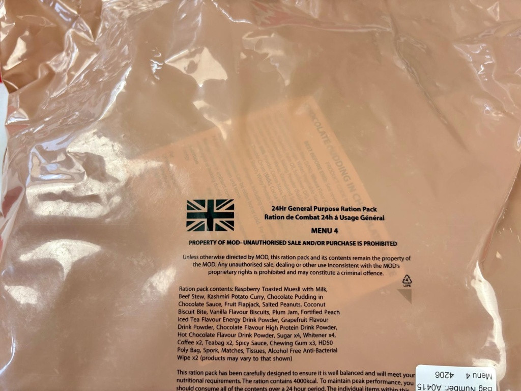 | Britská vojenská potravinová dávka 24h - Menu 5. Kuřecí houbové risoto |