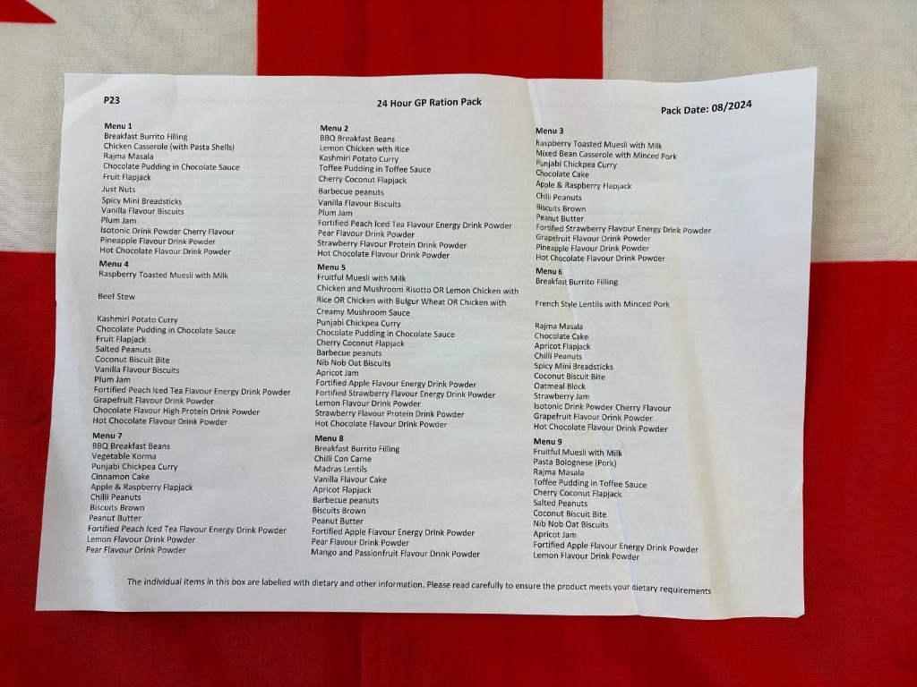 | Britská vojenská potravinová dávka 24h- Menu 9. Pasta Bolognese |