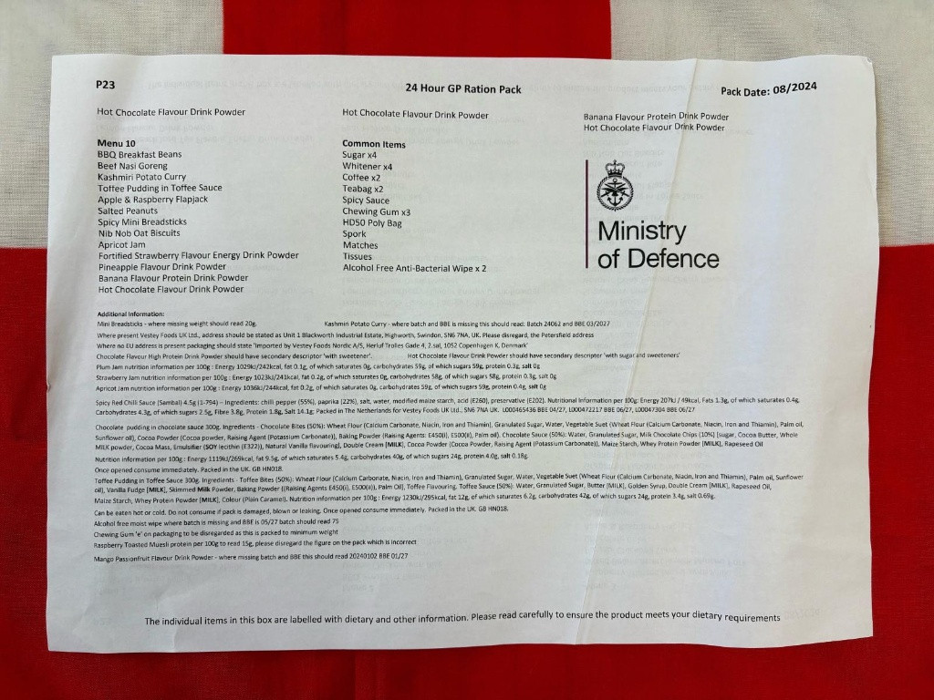 | Britská vojenská potravinová dávka 24h - Menu 1. Chicken Casserole |