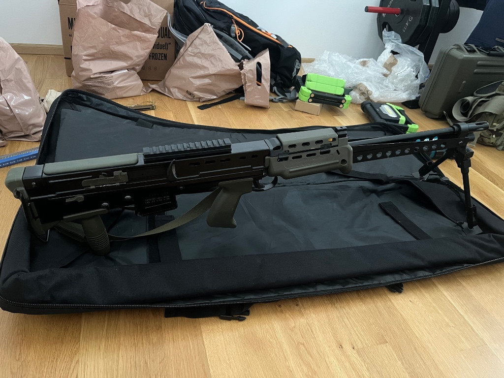 Prodám kultovní britskou pušku/kulomet L86A2 od STAR (AEG). Vnitřek je značně vylepšený - Zátěžový motor, SHS kola, pružina 140, střílí stabilně. Spolehlivá zbraň s unikátním bulpub vzhledem. Rychlá výměna pružiny bez demontáže. RIS lišta pro optiku, přední dvojnožka. Přidám lipol vysokokapacitní baterii, 3 ks točáků a přepravní tašku. Zbraň připravená na hru. K vyzkoušení v Úvaly či východní okraj Prahy. Popř. posílám.