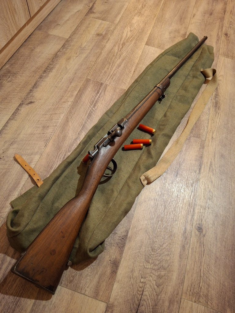 Francouzská puška GRAS modèle 1866-74 v brokové ráži 24. Krásný patinový stav, funkční, nevyrezlá pěkná hlaveň, silné pero. Možno přikoupit černopraché náboje v dané ráži 24. Ke sběratelským účelům, nic nepodporuji. Nejlépe osobně Tábor, ale mohu i zaslat. Pouze volat od 8:30 - 23:30 Zbraně kategorie D, NO- volně prodejné od 18let, vyrobeno do roku 1890. Podobné jako černý prach, Gras, puška, historická puška, nábojnice, flobert, perkusní, lefaucheux, přebíjení, lefoš, brokovnice