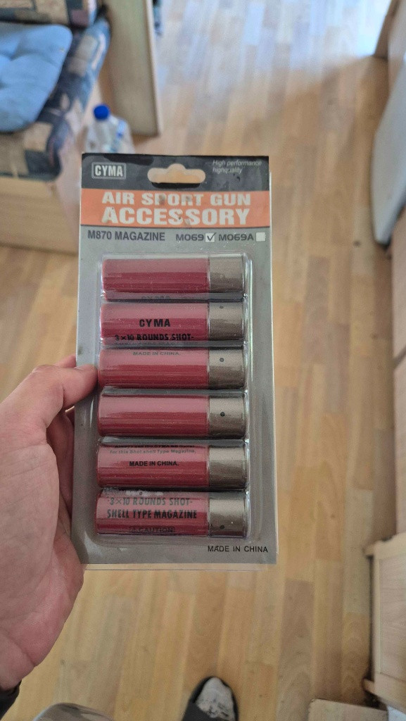 Dobrý den, prodám airsoftovou brokovnici M870, zbraň je opotřebená minimálně, jen občasné střílení po plechovkách na zahradě, za poslední 2roky max. 250vystřelených ran, zbraň v dobrém stavu. Obsah balení je brokovnice, plnička kuliček a 3patrony, Za 150,- přenechám i 6patron extra. Energie projektilu 0,9 J Úsťová rychlost 95 m/s (312 FPS) Teoretický dostřel 43 m Vhodná váha kuliček 0,20g Délka 1048 mm Hmotnost ~2205 g Předpažbí Plast Tělo Kovová slitina Pažba Plast, pevná Kapacita zásobníku: 30 kuliček (1patrona)