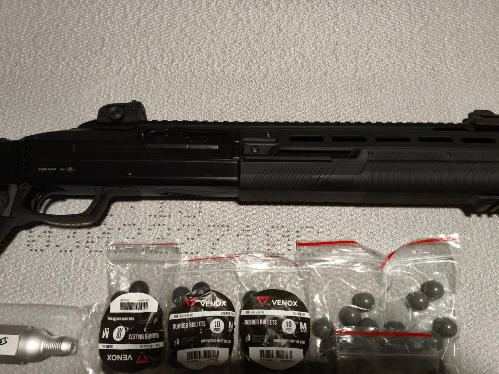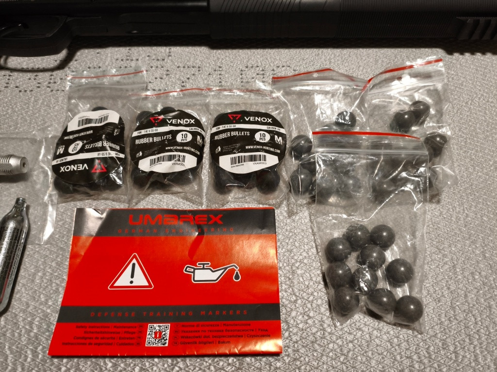 Prodám brokovnici od Umarexu tx 68 40 j,velmi silná zbraň pro výcvik,k ochraně majetku a podobně. ,téměř nepoužívaná,skoro jako nová, Kupovaná 5.7.2025. Bohužel mi prasklo poutko řemenu na levé straně. Je to vidět na fotu. Nemá to žádný vliv na střelbu ( gumové, s ocelovými , pepřové..atd.. ráže 68 call). Prodám vše ,co je na fotu. Pořizovací cena 13000 Kč Volně prodejné od 18 let.