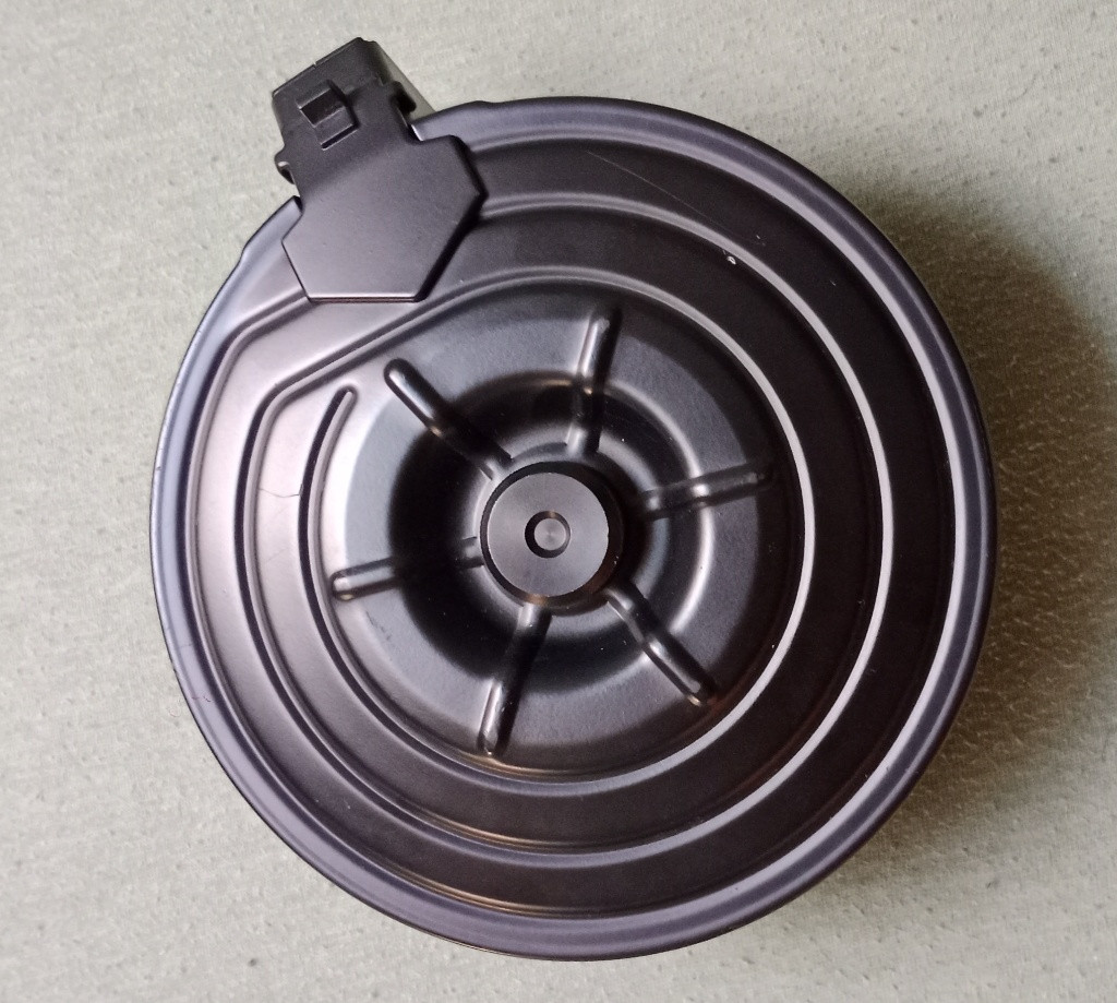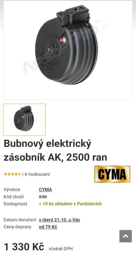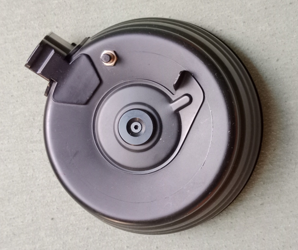 Prodám bubnový (elektrický) zásobník na AK – viz foto. Zásobník je funkční, ale má drobné kosmetické vady: jeden mini oděrek a na přední straně lehké škrábnutí způsobené částí zásobníku. Tyto vady nemají vliv na funkčnost. Podmínky: Cena: 700 Kč. Možnost zaslání poštou / přes zásilkovnu (poštovné hradí kupující) nebo osobní předání. Kontakt: Pište sem do zprávy nebo na WhatsApp: [734 782 842] — pošlu více fotek nebo odpovím na dotazy.