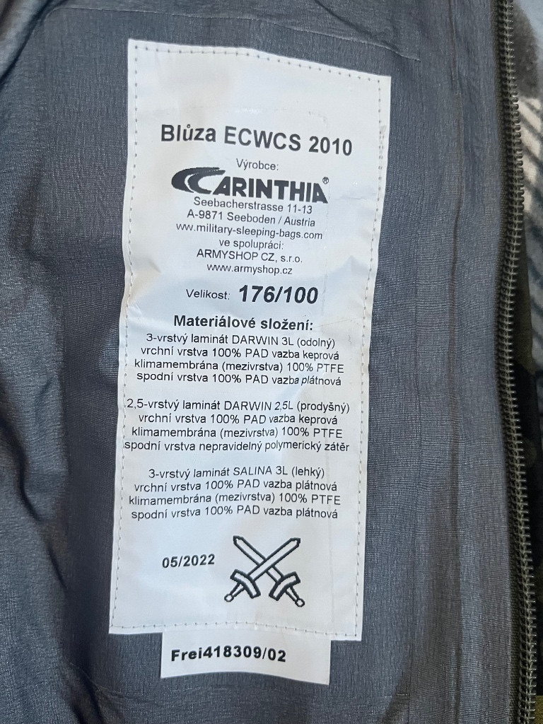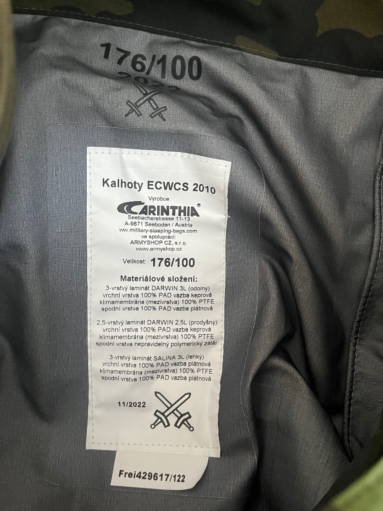 Popis:Bunda AČR ECWCS 2010 vz.95 les + kalhoty ECWCS 2010