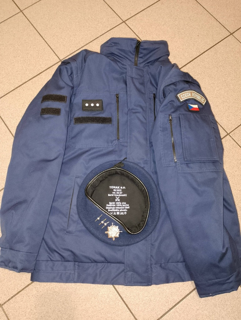 Bunda vz.2000 modrá AČR pro letectvo+tmavěmodrý baret včetně odznaku a hodností četaře,vše nenošené cena 1500 kč.