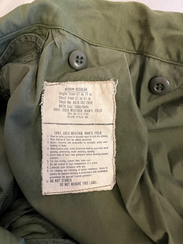 M65 velice pěkný stav, téměř nenošená Včetně novější vložky. Vietnam 1972 Medium Regular
