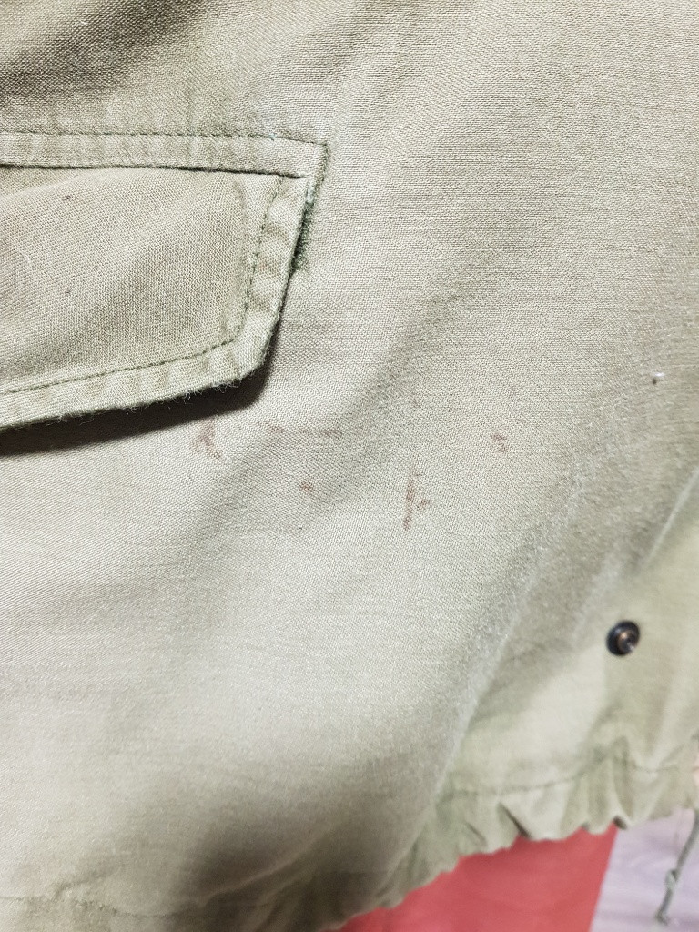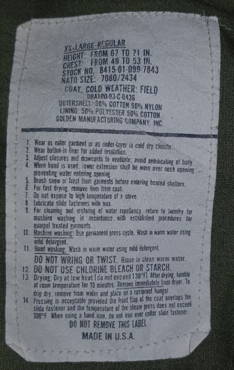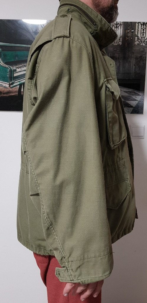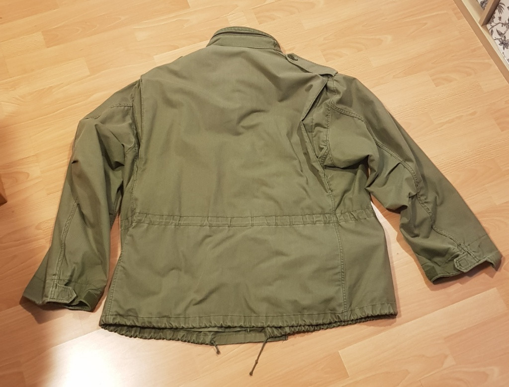 Orig. kabát M65, vel. XX - Large-Regular, r.v. 1993. Na přední straně jsou malé skvrny, viz foto. Míry: hrudník a pas: 140cm délka zad: (bez límce) 85cm délka zipu: 47cm Foto - kabát na postavě výšky 193cm