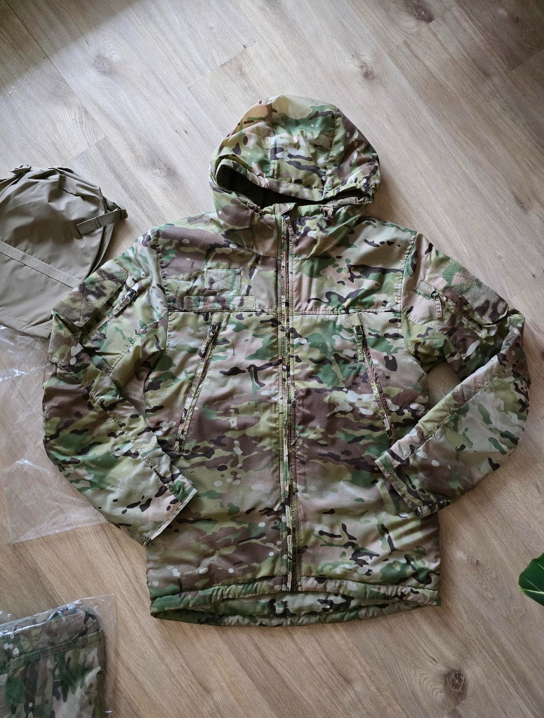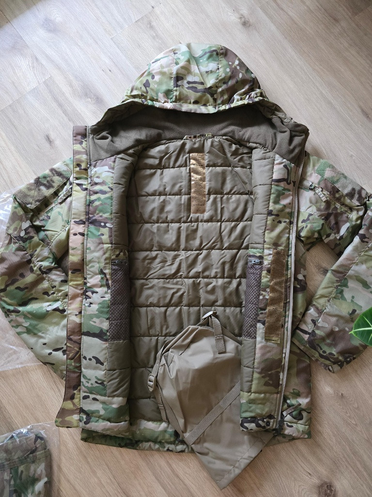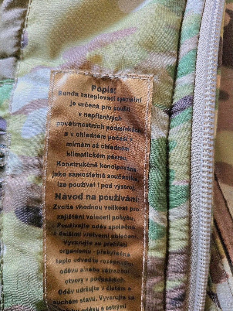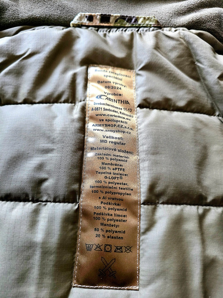 Nová Bunda zateplovací speciální, Carinthia multicam. Rozbalená pouze na focení. Velikost MD regular. Bunda je určena do chladného a nepříznivého počasí. Tomu odpovídá celkové provedení se zvýšeným horním okrajem, zateplenou kapucí a voděodolnými zdrhovadly. K výrazným přednostem patří také vysoká hřejivost již v prvních momentech po oblečení, extrémně nízká hmotnost a minimální rozměry ve sbaleném stavu. • zateplená kapuce, nastavitelná ve dvou směrech • odvětrání v podpaždí na zip • límec zateplený fleecem • voděodolné zipy YKK® • přední dvoucestný zip s protivětrnou chlopní a chráničem brady • dvě hrudní šikmé kapsy • dvě vnitřní síťované kapsy na zip • rukávové kapsy ošité suchými zipy • nastavitelný pás • přepravní kompresní vak součástí