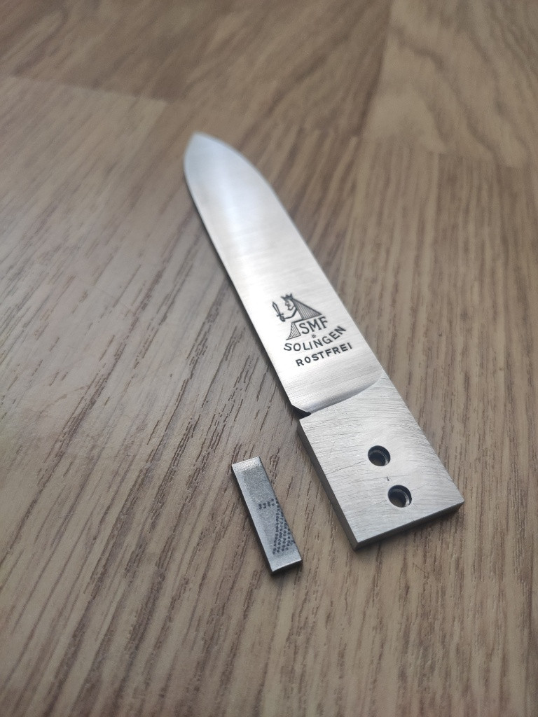 Prodám repliku čepele ke gravitačnímu noži. Materiál nerez 1.4034. Kaleno na cca 56-57Hrc. Není nanýtovaný jezdec, přidám jako neopracovaný polotovar. Cena 1200Kč. Platba předem +80, odesílám zásilkovnou.