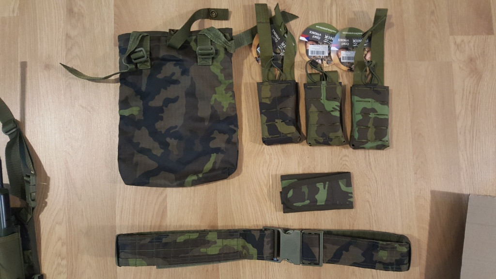 Prodám zánovní chest rig od AS-Tex včetně prsního panelu - 1100,- nové sumky od Fenix Protector: 4x dvojsumka na M4 zásobník 350,-/ks utility sumka 280,- tři sumky na jeden M4 zásobník - 230,-/ ks, Dále zelená sumka na radio 100,- odzahovák AS-Tex 350,- opasek AS-Tex 550,- Helma 300,- obal na Camelback 200,- Pouzdro na zbraň 500,- Kšiltovka Multicam tropic 100,- Stahovací sumka na radio nebo Nalgene lahev 150,-