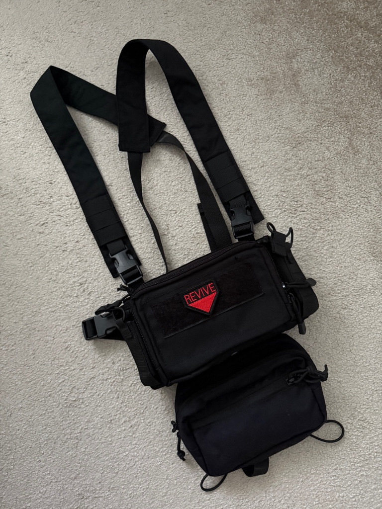 Prodám málo použivaný chestrig, velikost se dá upravit stahovacími popruhy, integrovaná sumka na 3x zásobníky M4, dále také integrovaná kapsa na 2 pistolové zásobníky.