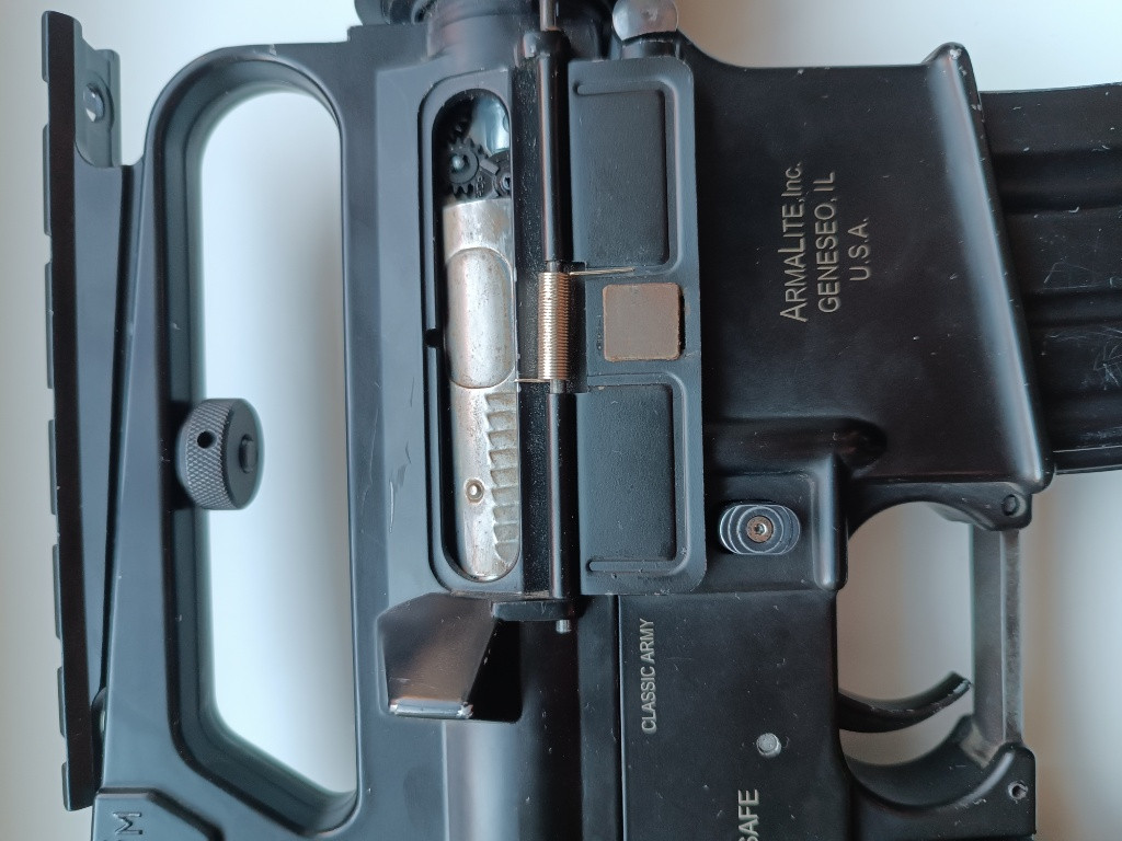 Dobrý den, prodám oldschool AR (M15A2) od Classic army. Zbraň je starší výroby, ale v rozumném stavu. Uvnitř zbraně se nachází SHS CNC mechabox s mikrospínačem a na kabeláži do pažby je instalován mosfet. Vzduchotechnika SHS hliník, včetně trysky, hlavy válce i pístu. Půst je s celokovovým ozubem a Pružina M130. Zbraň s vypnutým Hopupem dává cca 2J na 0.30 kulích. Komora hop-up je základní kovová G&P. Zbraň má pár kosmetických drobností, Jinak funkční včetně montáže kolimatoru. Předání nebo pošta po domluvě.