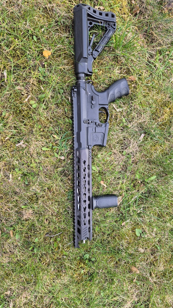 Popis: Řada zbraní typu M4/M16 od G&G s označením CM16 má polykarbonové tělo. Navíc je vybavena elektronikou, která nabízí funkci mosfet a burst. Vnitřní spoušťové kontakty byly nahrazeny elektronickými mikrospínači a v tubusu pažby je umístěn elektronický obvod označený jako E.T.U. (Electronic trigger unit). Ve zbrani je konektor typu mini tamiya, po dohodě je možné konektor vyměnit za jiný. Zbraň má lehké oděrky z používání a servisování/čištění. Zbraň má velice málo nastříleno, byla používaná jako DMR, tudíž byla málo využita z tohoto důvodu prodej. Ke zbrani není zásobník a hlaveň z důvodu prodloužení kouká ven ze zbraně, ideálně zakrýt tlumičem Parametry: Barva: Černá Blowback: Ne Materiál těla: ABS plastové Materiál pažbení: Kovové Typ zbraně: AEG elektrika Typ montáže na předpažbí: KeyMod Verze mechaboxu: Verze 2 Elektronika: Procesorová jednotka Rychlovýměna pružiny QSC: Ne Výrobce: G&G Na zbrani byly provedeny úpravy: Přetěsnění vzduchotechniky Nová tryska Přepodložkování Prowin cnc hop-up komora Přesná nerezová hlaveň 6,02 mm v délce 300mm Hop-up gumička Macaron od Maple Leaf Omega přítlačný váleček Mosfet na používání 11.1V Silnější pružina Výkon na kuličkách 0,28g cca 2,2Joule Ke zbrani necháme Taktickou ručku typu MOE grip keymod s označením PTS Cena 5 500Kč bez poštovného, o ceně je možné se domluvit.