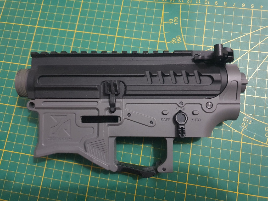 Telo ze zbraně Zion Arms R15 Mod 1, vyrobeno na CNC strojích z leteckého hliníku 7075-T6, upper střiknul známej nějakým autolakem, k tělu jsou veškeré drobné díly. Motor z té samé zbraně, nastříleno cca 2k.