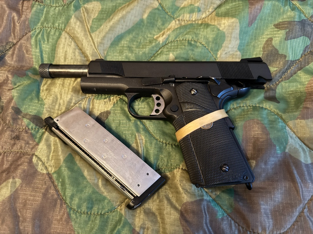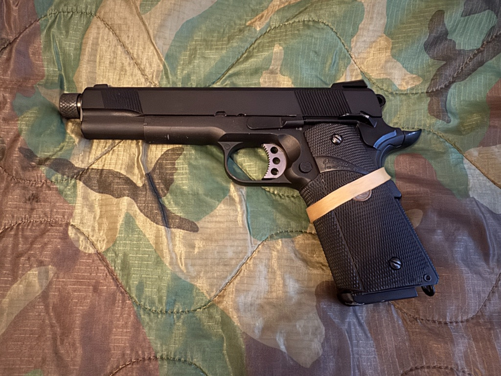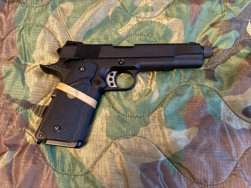 Prodám pistoli Colt 1911 MEU SOC od WE. Černá bez RIS lišty, delší custom ocelová hlaveň s vněším levotočívým závitem M14. Dnes již velmi těžce sehnatelná. Pistole je 1x použitá. Užíváno jednotkami Delta Force.