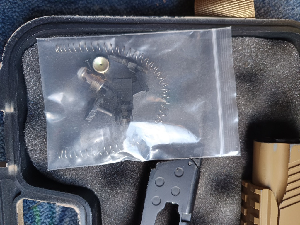 Součástí je kufřík,náhradní díly do zásobníku, střelivo 4,5ocelove broky,stehni pouzdro.