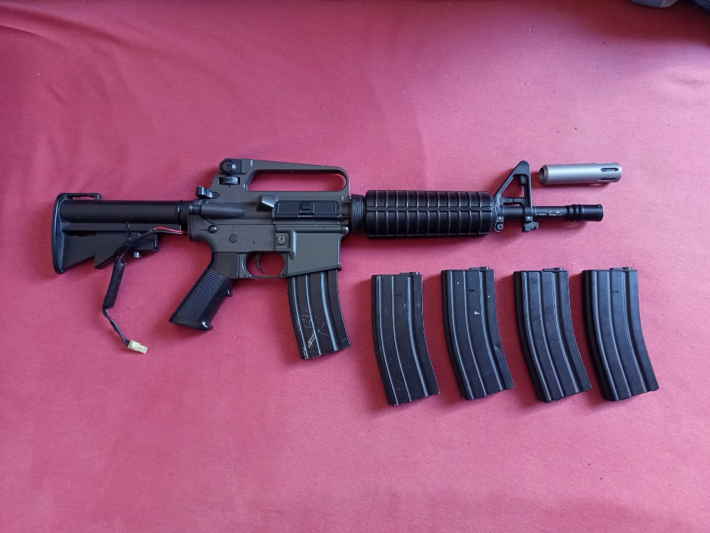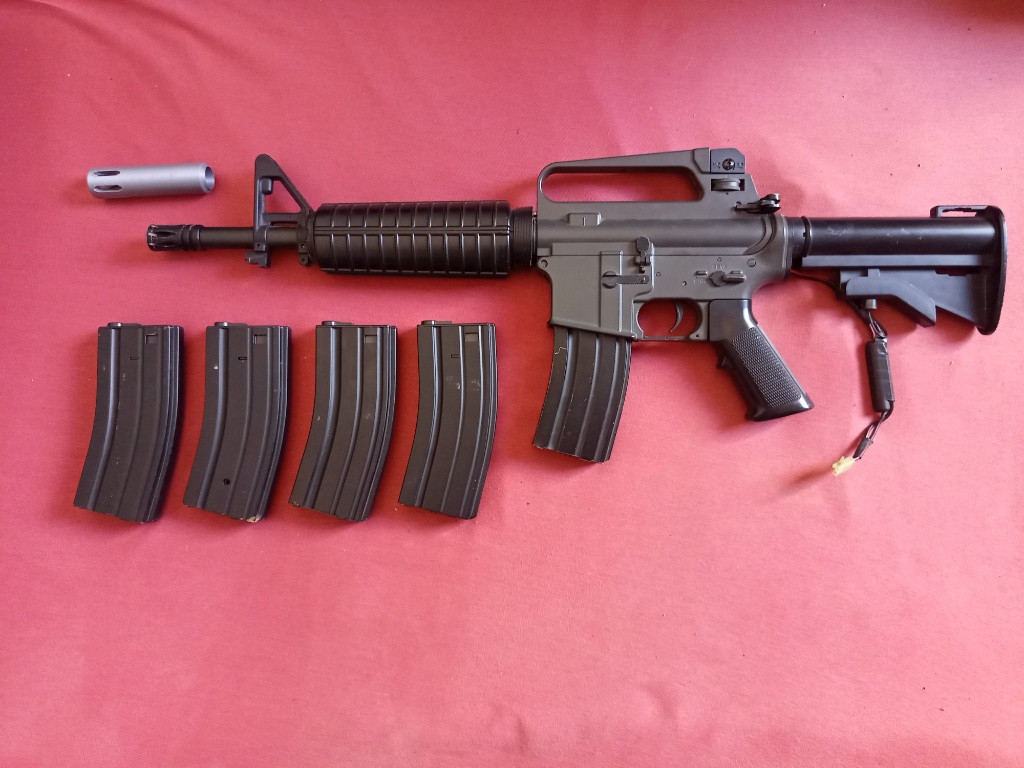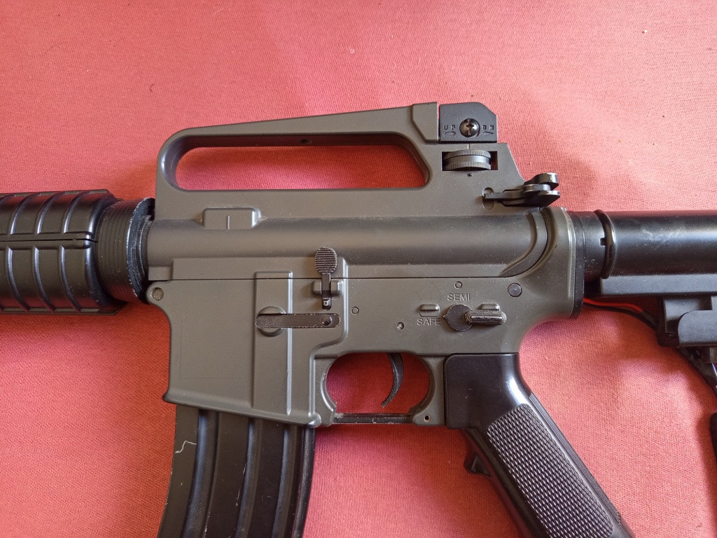 Prodám Colt M733 Zbraň + 5x zásobník + náhradní 3d tisknutý oříšek to tvaru XM177 Zbraň má kabeláž vytaženou pod pažbou.