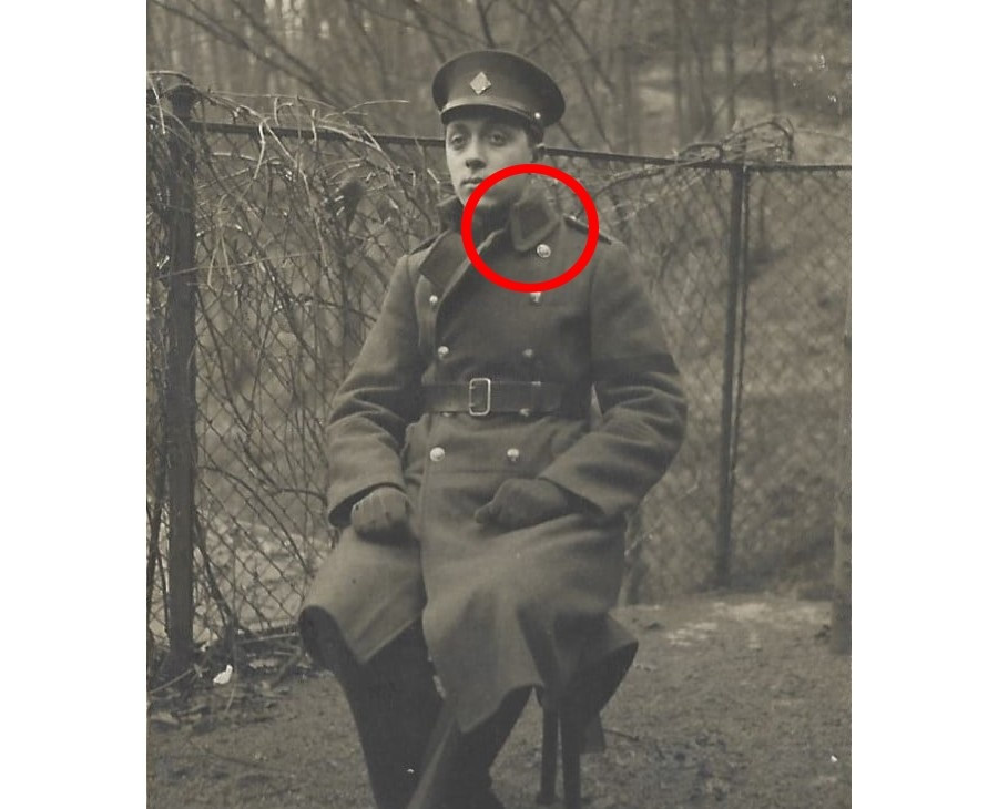 | Fotka prvorepublikového vojáka v rámečku vyznamenání |