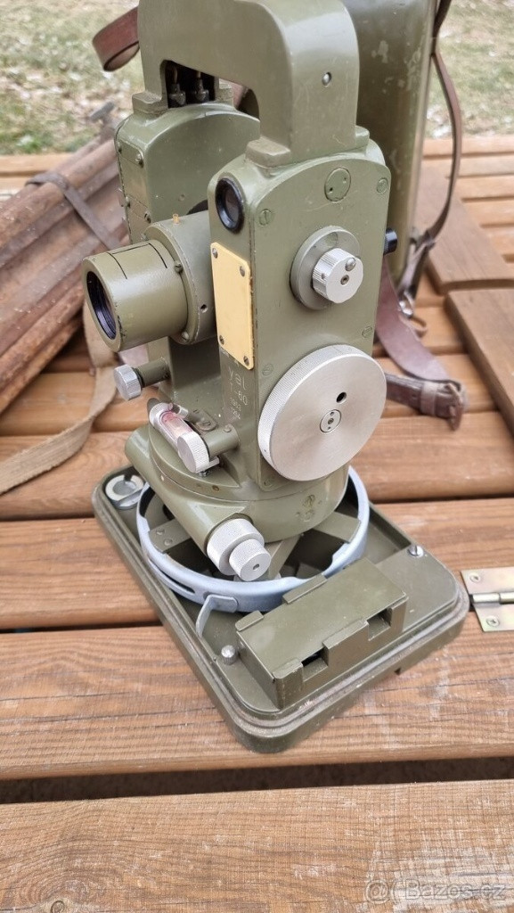 Prodám armádní dalekohled/zaměřovací teodolit, stav viz foto. Včetně nosných popruhů a trojnožky! Osobní předání možné na Tišnovksu a po dohodě v Brně. Více fotek na vyžádání pošlu