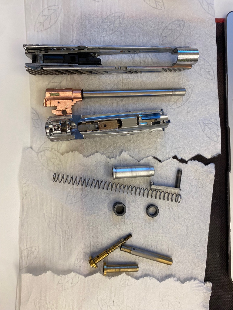 Prodám pistoli Hi-Capa 5.1 v tuningu od CTM TAC. hlaveň Maple Leaf 117 mm zelená gumička Autobot (pravděpodobně Maple Leaf) CNC hop-up od Maple Leaf vodítko pružiny Cow Cow zesílená vratná pružina Guarder vzduchová komora Marui zesílená vratná pružina pístu zesílená pružina spouště blokátor zadržení závěru vnější díly (slide) od CTM TAC tracerová nástavba s imitací výstřelu panely pro zkrácený chod závěru od CTM adaptér na HPA od CTM TAC (bere M-series zásobníky) V balení dám: tři zásobníky M-series green-gas zásobník od Marui veškeré náhradní drobnosti (gumičky, pružinky apod.) Cena: 13 000