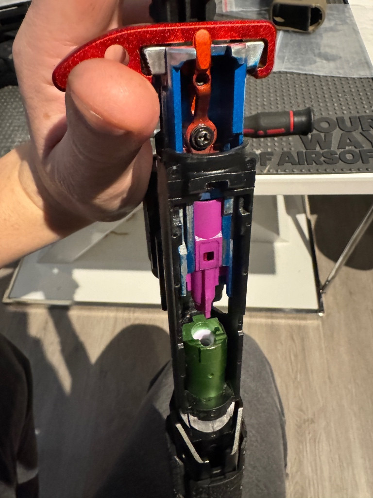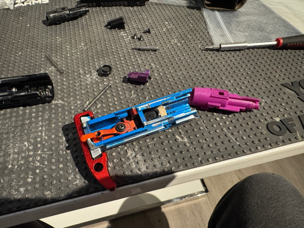 Pouštím dále AAP v konverzi, je laďěné známým a funguje šíleně dobře při 120psi dává 2J na 0,32g kulích. Pořídil jsem jej nedávno ale zahrál jsem si s ním 2x a nestíhám uhrát veškeré kvéry tak nekteré pouštím dále. Venkovní díly jako kit a lišty jsou úplně nové hrané 2x. Uvnitř se nachází 200mm hlaveň AA, hop gumička Modify 55ˇ,Hadron TDC hopkomora s dodělaným laděním na ris liště od tridos, Cnc bolt CTM s tryskou ctm a Npasem v kombinaci s cowcow gumou, set silnějších vratných pružin a hliníková zarážka trysky, cnc spoušť Tridos, a cnc set spoušťového mechanismu s úpravou kladívka na 8mm ložisko jako má glock. Vše funguje výkon na cca 130psi viz foto pro více info nebo fotek mě neváhejte kontaktovat Uvedená cena je za zbraň, tlumič, grip Vše ostatní dle domluvy