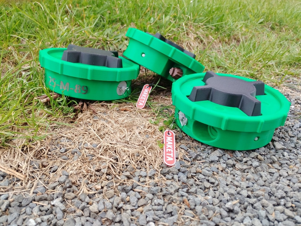 Cvičná maketa funguje, stejně jako originál, při stlačení, tedy sešlápnutím, jen místo detonace a destrukce nohy na vás přátelsky zahvízdá.