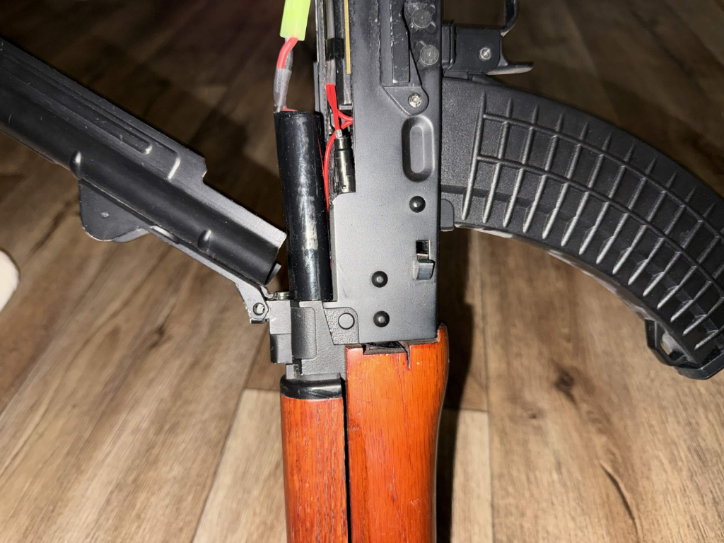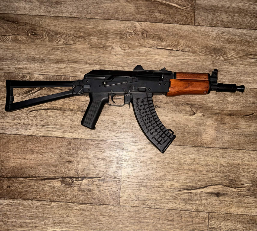 Prodám airsoftovou zbraň CYMA CM.045 AK-74U se sklopnou kovovou pažbou a laminovaným dřevěným předpažbím. Jedná se o celokovové provedení s realistickým zpracováním (kovové tělo, horní kryt i další kovové části, dřevěné předpažbí). Kompaktní verze AK-74U je vhodná jak na CQB, tak na běžné hry, zároveň díky kombinaci kovu a dřeva působí velmi autenticky. Zbraň byla většinu času vystavená doma v pokoji jako dekorace. Hraná byla přibližně 4×. Je plně funkční, bez problémů střílí a podává kuličky. Jediná vada: ulomený zobáček na horním krytu (dust cover). Na funkčnost nemá vliv – kryt drží, pouze je potřeba při zavírání lehce více zatlačit. Součástí prodeje: baterie (Nabíječka není součástí.) Tlačný zásobník. Preferuji osobní předání s možností vyzkoušení, ale po domluvě mohu zaslat. Na profilu prodávám také další 2 airsoft zbraně – při odběru více kusů možná sleva. V případě zájmu mě neváhejte kontaktovat.
