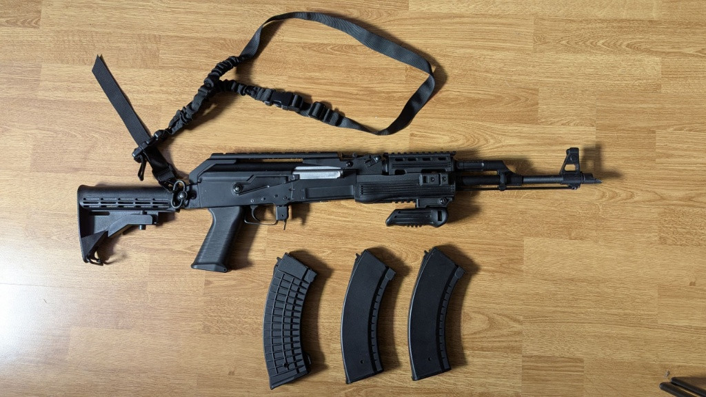 https://airsoftpro.cz/cz/airsoftove-zbrane/elektricke-dlouhe- aeg/ak/ak-74c-tactical-cm.039c-celokov-detail zbraň byla zakoupena cca před rokem a půl a byla cca na 10 akcích, příkoupil jsem k ní dva tlačné zásobníky na 150bb, v originálním balení je točný zásobník na 550bb. Ke zbrani jsem také příkupoval 1600mAH NimH baterku a bungee popruh pro lepší manipulaci a nošení viz. foto celkem byla původní cena 6400,-