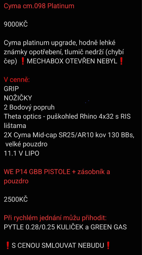 Prodám Cyma SR25 v Platinum edici INFO na fotce Osobní odběr