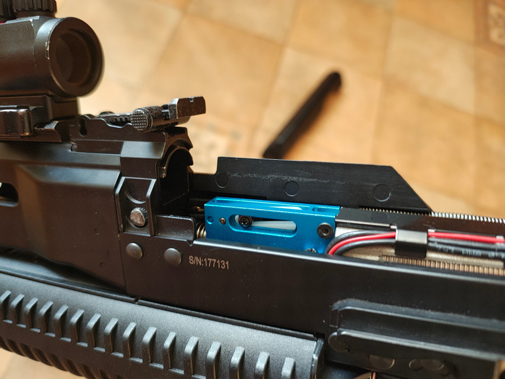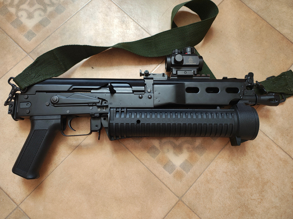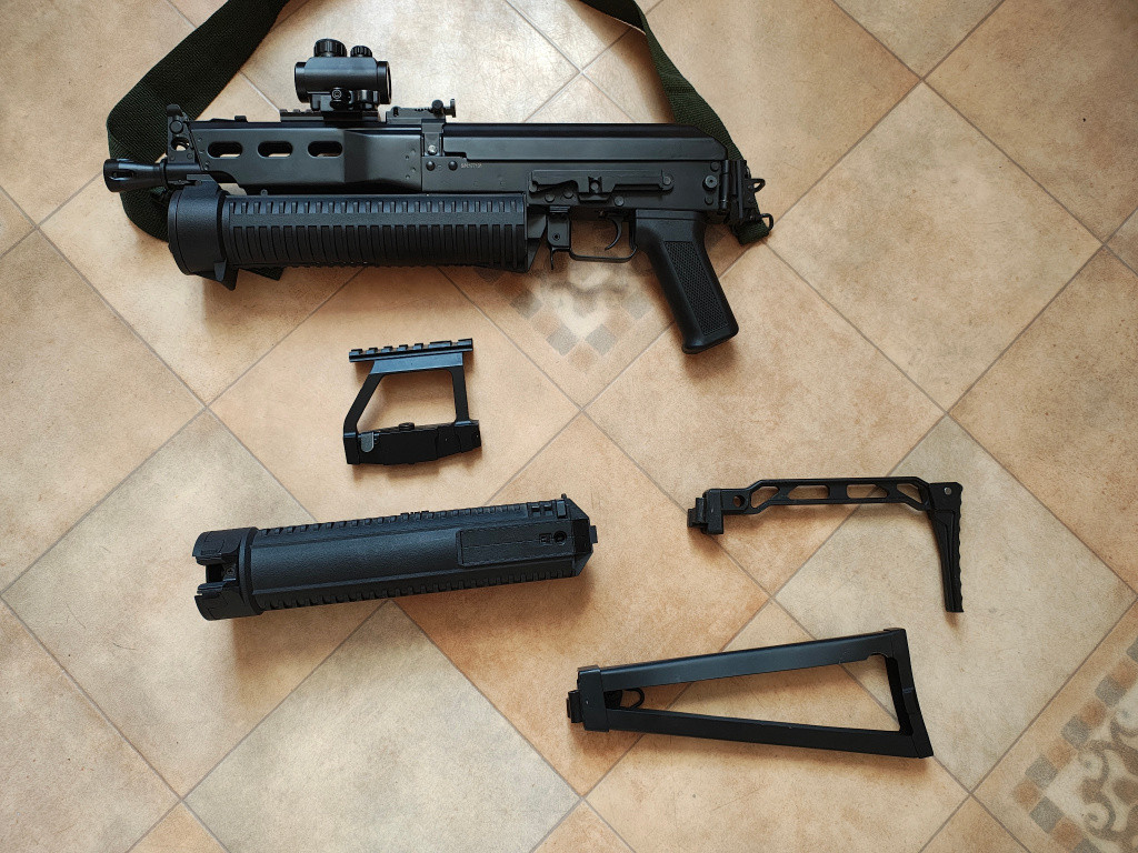 prodám PP19 Bizon Blue Edition od Cymy, předěláno na 11,1V takže + zátěžová kola, motor, píst s ocelovými zuby a nová kabeláž s Perun procesorovkou. Dále púřesná hlaveň a CNC hop komora. Rychlá výmena pružiny přístupná po sklopení pažby, přidělaná RIS lišta na předpažbí. Možnost použití bez pažby + dvě další pažby vč. originálu. Ke zbrani 1 točný a 1 tlačný zásobník, UTG kolimátor a boční RIS montáž. Aktuálně dává 1,7J.