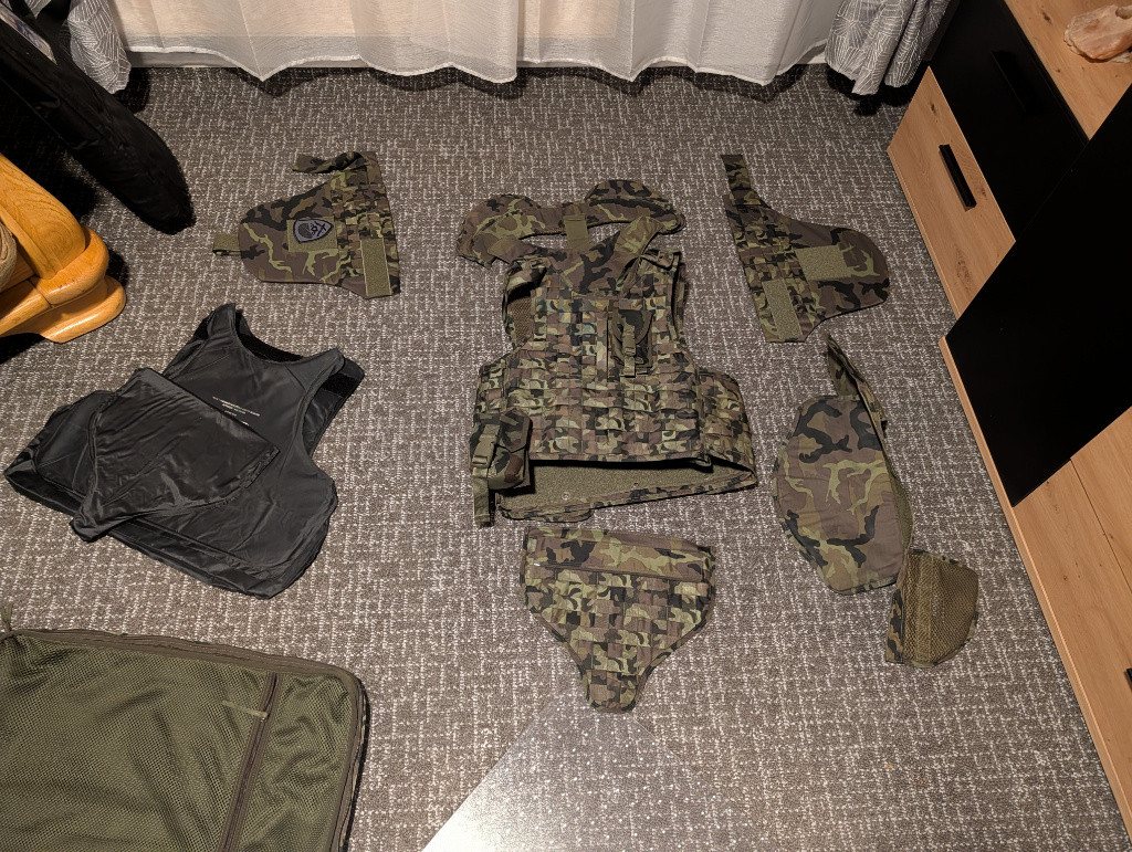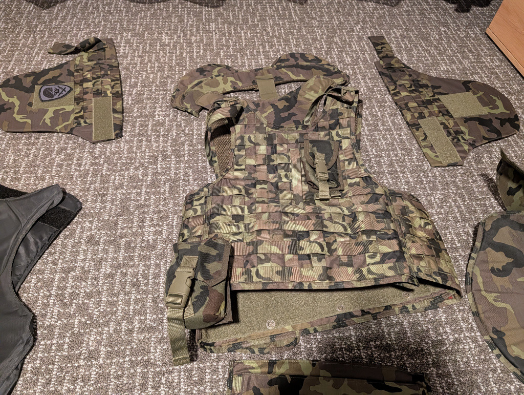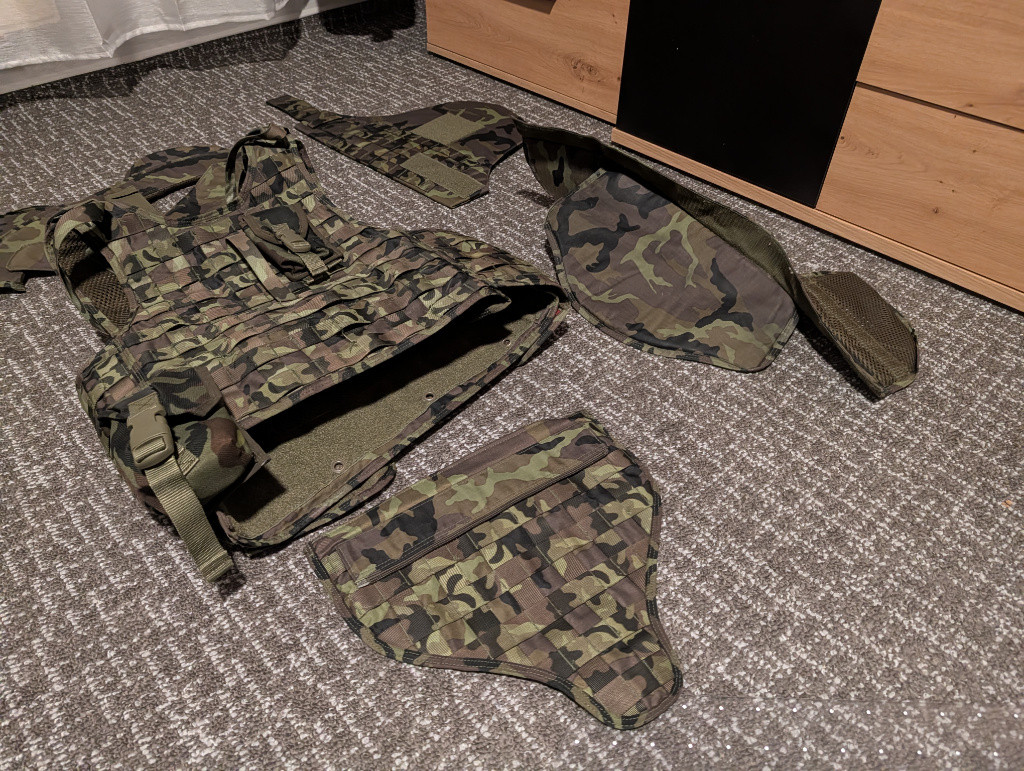 Prodám taktickou vestu v maskování vz.95, ideální na airsoft, milsim nebo reenactment AČR. Součástí prodeje: hlavní nosič s MOLLE vazbou, límec / ochrana krku, ramenní chrániče, boční balistické panely (textilní části), ochrana třísel. Taška pro celou vestu. Všechny díly ve stejném maskování, kompletní sestava. Vesta je ve velmi dobrém stavu, nic netrháno, suché zipy drží, přezky funkční. Cena dle dohody, když bude rozumná. Předání nejlépe osobně v okolí Jindřichova Hradce, Českých Budějovic nebo Hluboké nad Vltavou. Možnost zaslání detailních fotek.