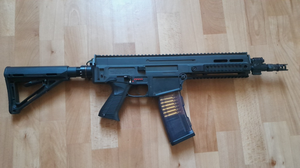 Prodám CZ 805 Bren A2 od ASG. Uvnitř Polarstar Kythera a Wolverine Co2 Wraith Stock. Systém je na 12g Co2 bombičky. Výkon regulovatený cca 1-2,55 J. Na jednu bombičku zvládne 120-130 výstřelů. Na zbrani CZUB kompenzátor, modernizovaná oka popruhu, natahovací páka, záchyt zásobníku a šedý elox. Lanko Kythery spojené s natohovací pákou zbraně. Hlaveň SRC 310mm, gumka Maple Leaf. Ke je zbrani 7 zásobníků upravených z originálních (6x45bbs, 1x20bbs) a šachta na stanagy.