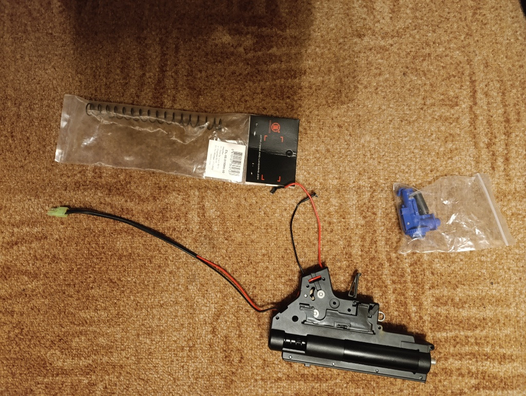 Prodám mechabox V2 vytažený po zakoupení ze zbraně. Vyměněna tryska za 21 4mm airsoft parts vložena pružina m110 solink (m115 přidám ) , prepodlozeno, k zátěžový motor Čína 35k platová komora basaro guma 60°. Přechod na HPA