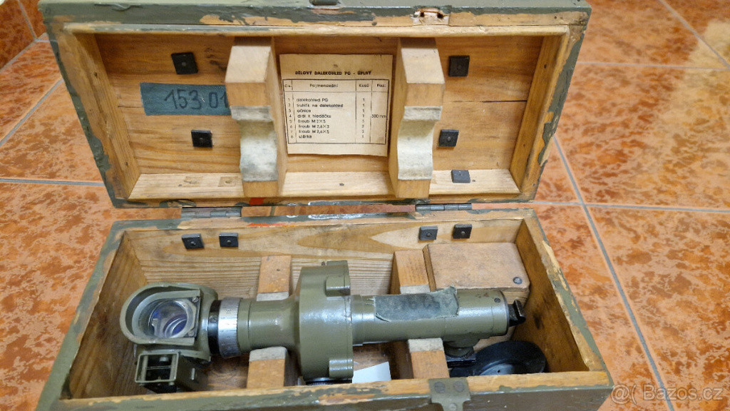 Popis:dalekohled PG-1 (zaměřovač) v truhlíku, vojenský