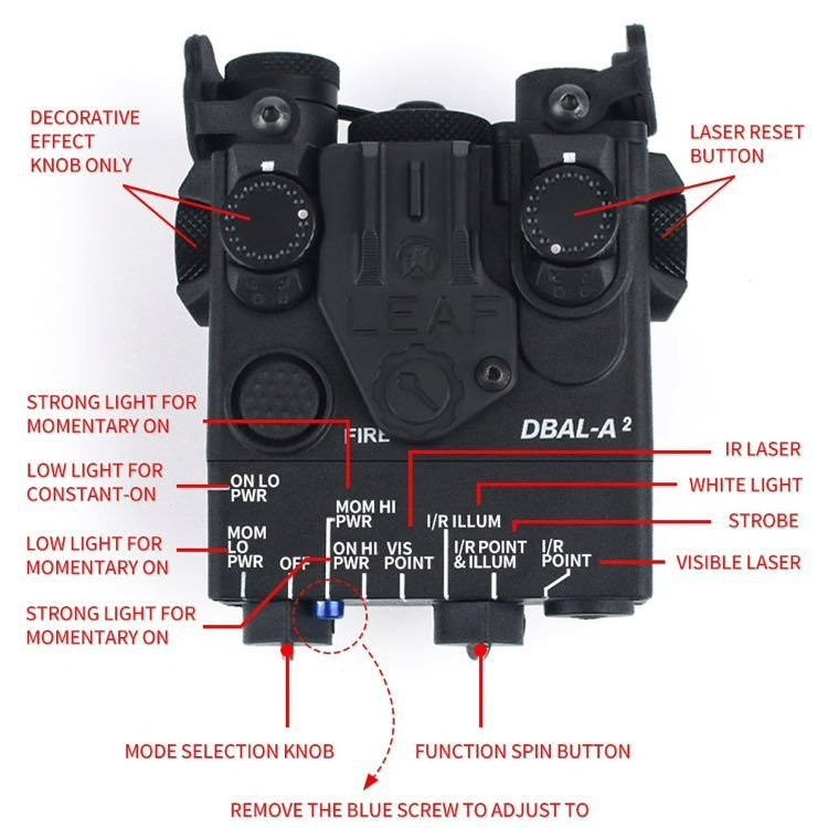 Kopie DBAL-A2 od firmy WADSN. Červený laser, IR laser, svítilna, IR krytka svítilny.