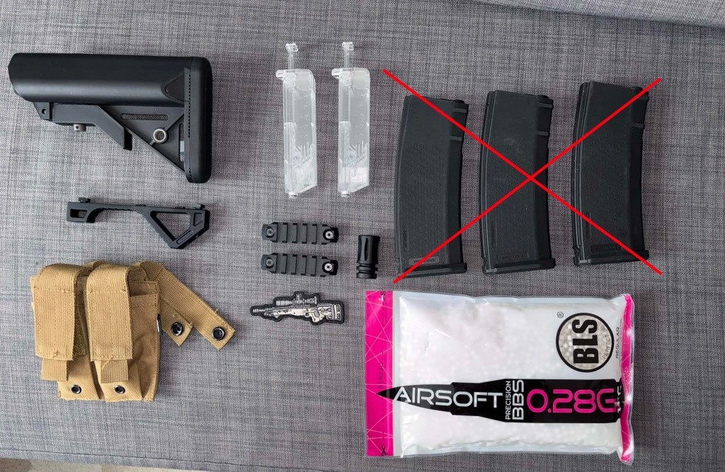 Sumka na 2 zasobniky 9mm nebo 2 plnicky – 180kc | Specna Flash hider 80kc | 2 plnicky 90kc | Specna mlok rukojet 200kc | pazba crane 300kc | patch sniper 90kc | BLS 0.28g nerozbalene 180kc | 2 Mlok na ris adaptery 120kc | Osobni predani Brno nebo zasilkovna