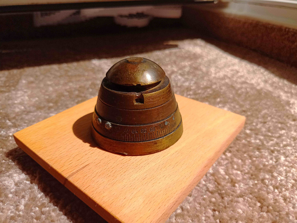 Prodám ze sbírky dělostřelecký časovač. Stav viz foto, rok 1915. Koukněte i na moje ostatní inzeráty - platné do smazání.