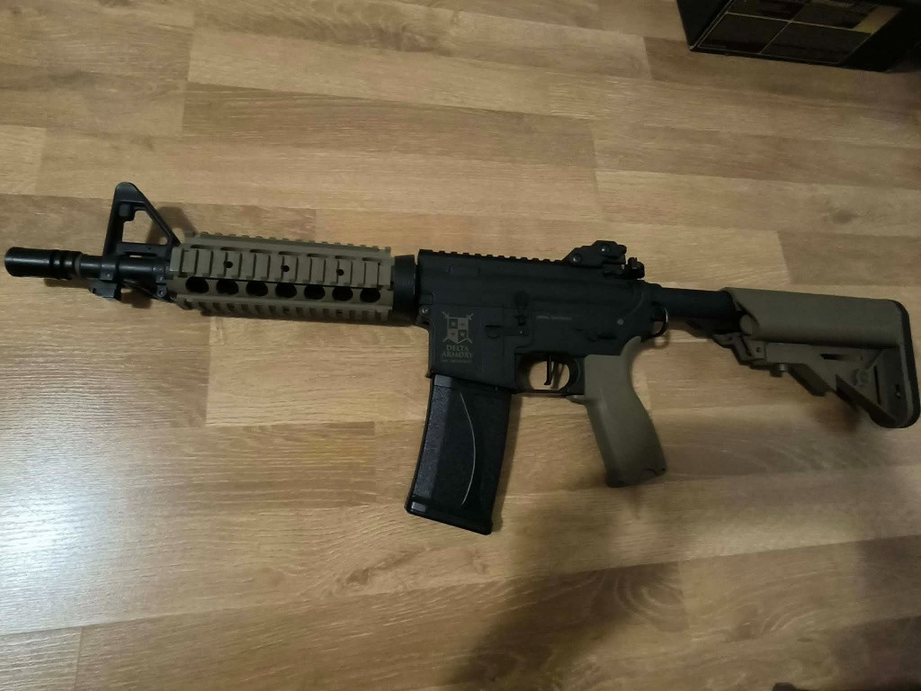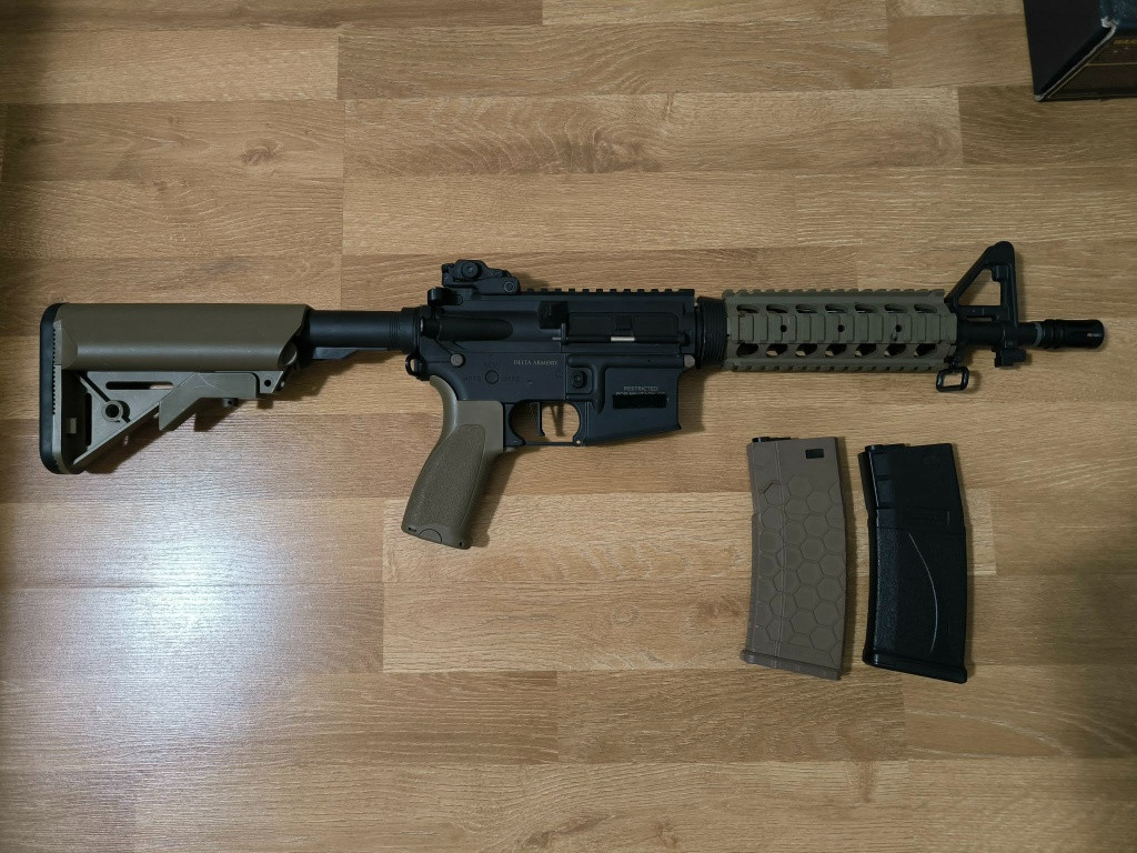 Dobrý den, prodám delta armory AEG. Jedná se o plastovou verzi. Zbraň je funkční. Při semi vystřelí 2 kuličky ale to bude nejspíš v desce. Zbraň má od základu M100. Ke zbrani 2x zásobník viz foto.