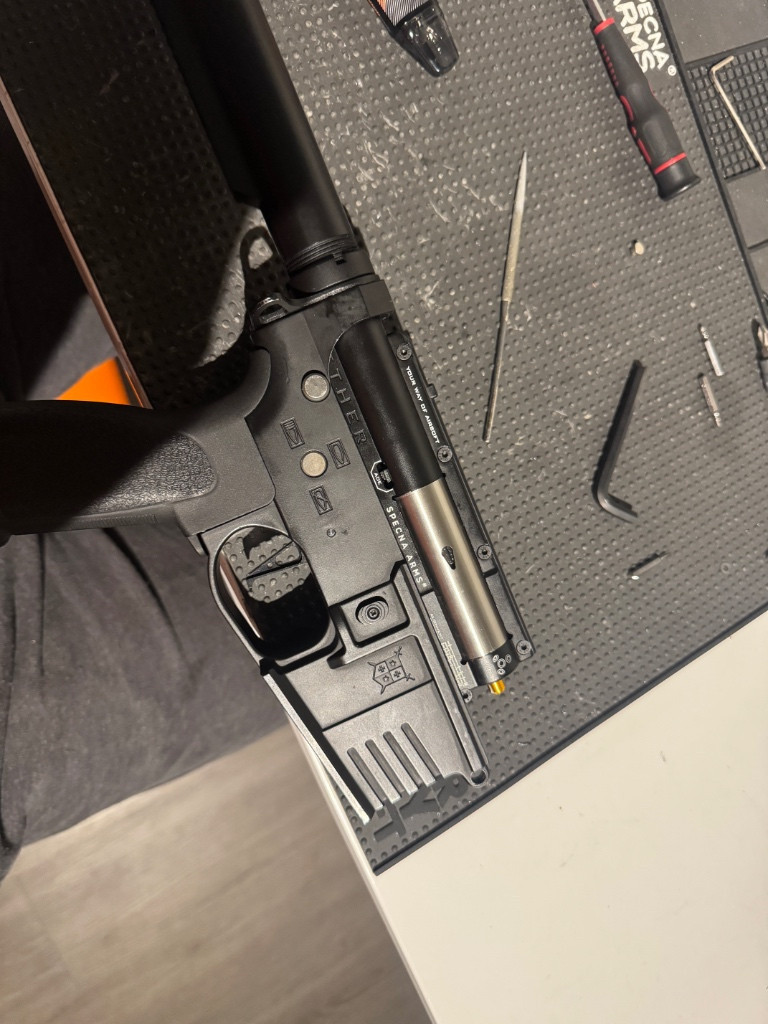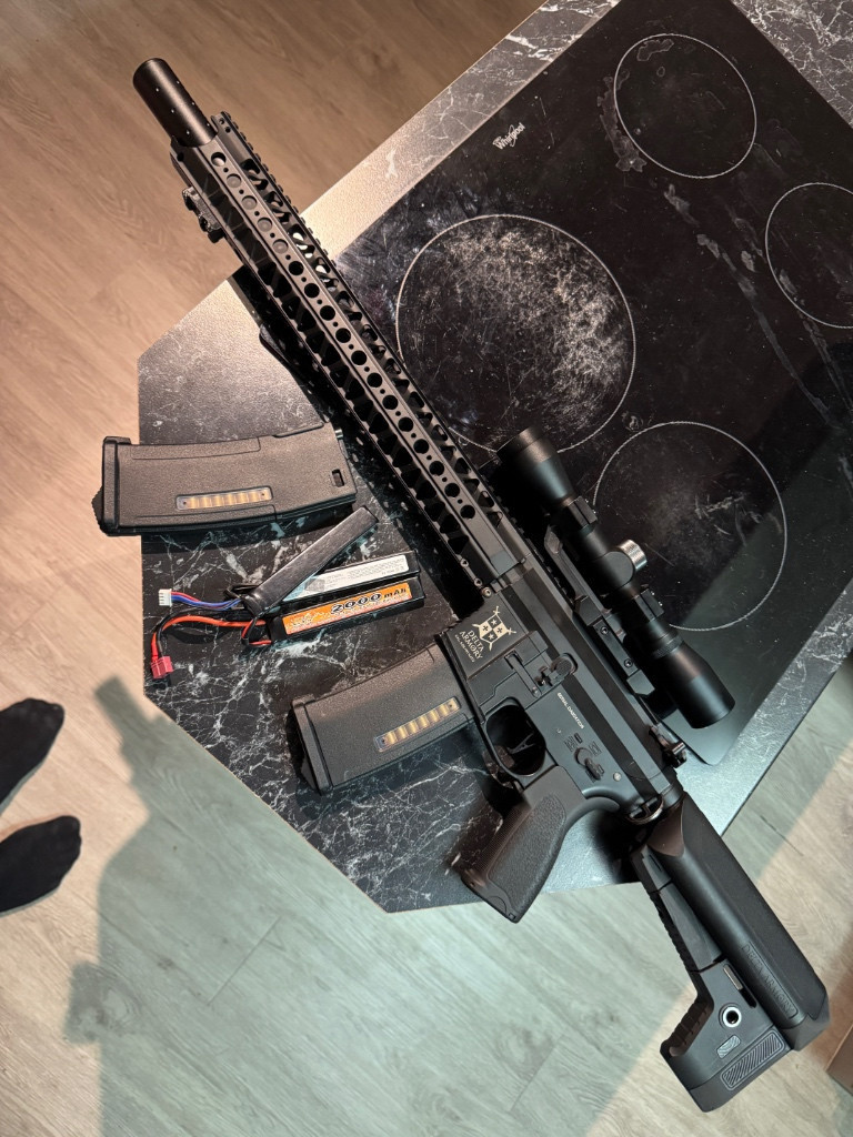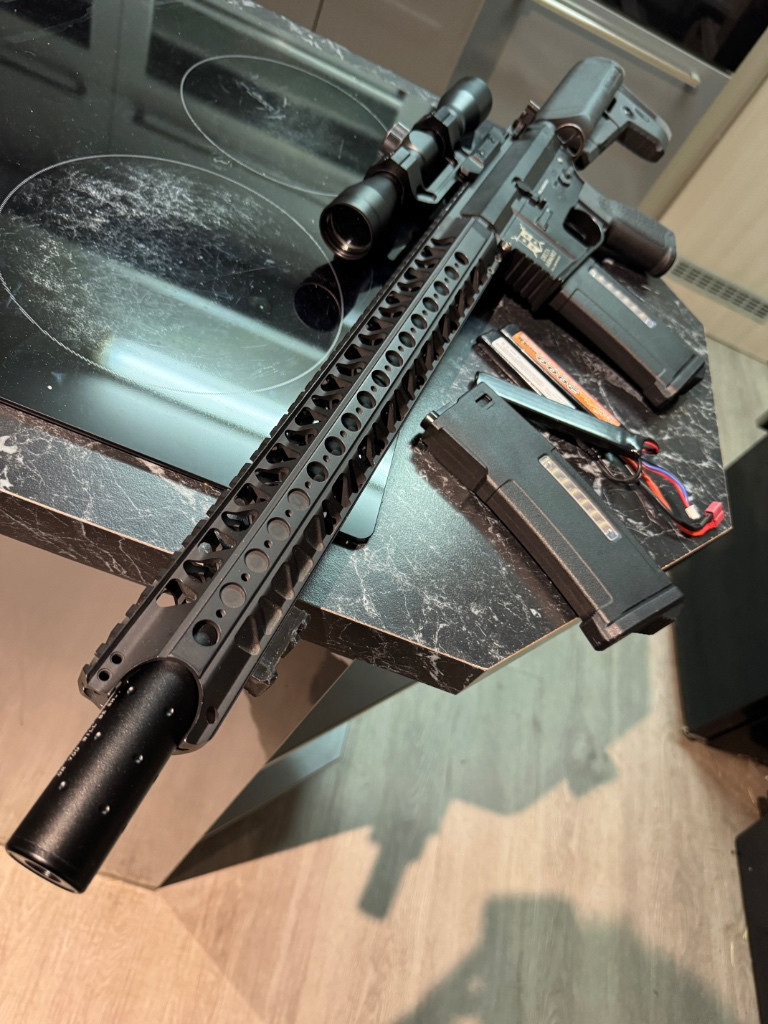 Nabízím k prodeji softku postavenou na základu Delta Armory Alpha s použitými vnitřnostmi z DA Freya gen2 full CNC upgrade v kombinaci s Mechaboxem SA Aether a BT jednotkou Scylla a zátěžovým motorem, nerez hlavní 400mm a hopgumou DA Berserk. Zbraň dává 2J na 0,32g kulích. Ke zbrani přidám 11,1V baterku 2000mAh a dva zásobníky stylu DMAG. Pro více info a fotek mě neváhejte kontaktovat Při rozumném jednání není problém cenu snížit