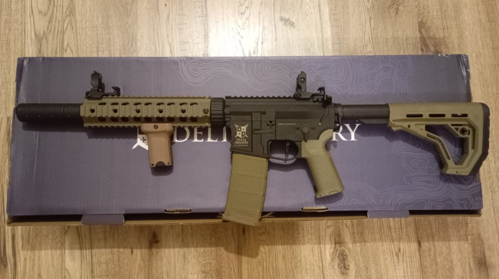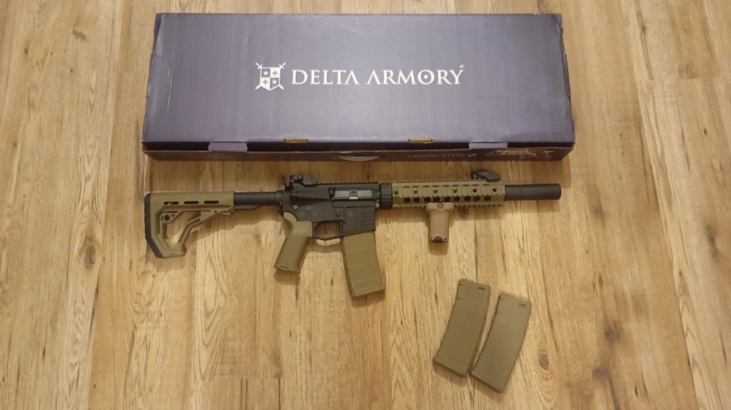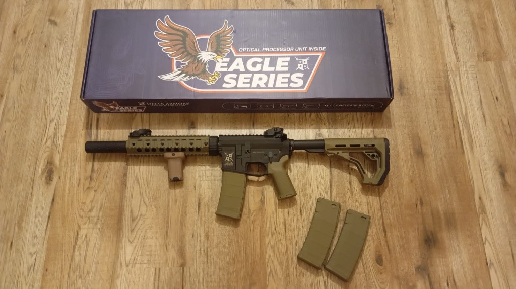 Prodám airsoftovou zbraň Delta Armory AR15 Charlie SilentOps 9" EAGLE Half Tan , zbraň prodám z důvodu nevhodného dárku ( pouze rozbalená ) Ke zbrani ještě přidám 2 zásobníky a rukojeť