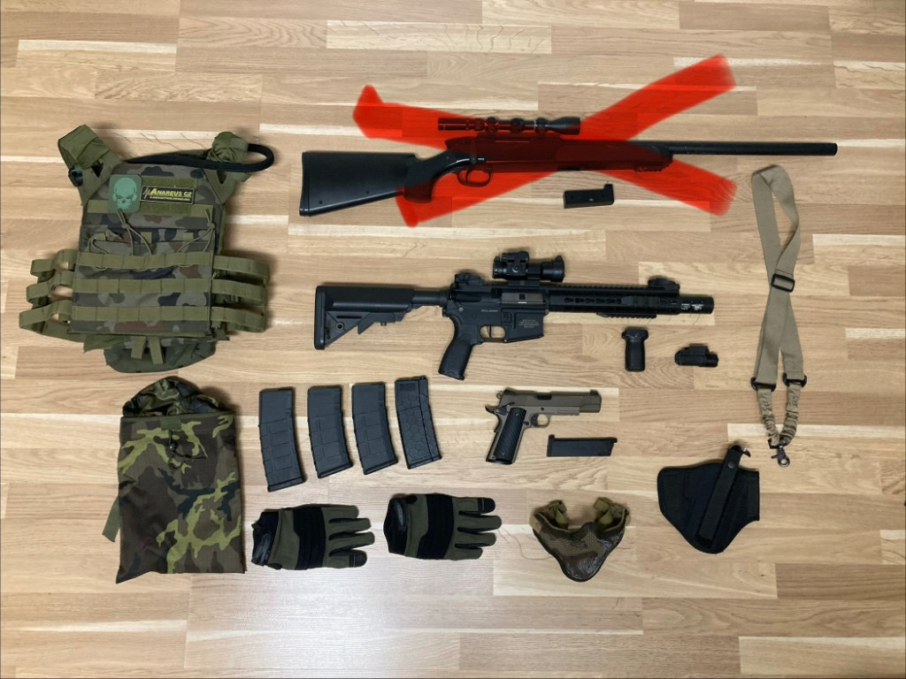 Hl.zbraň - Delta Armory AR15 SilentOps 8 Bravo Black s custom tlumičem Navy Seals. Plně elektrická zbraň. Sekundární zbraň - Colt 1911, plynovka, greengas.